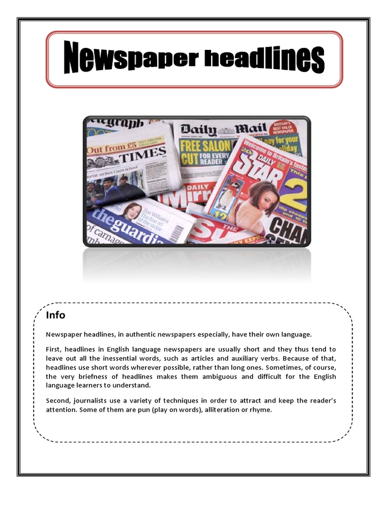 English Esl Headlines Worksheets Most Downloaded 11 Results